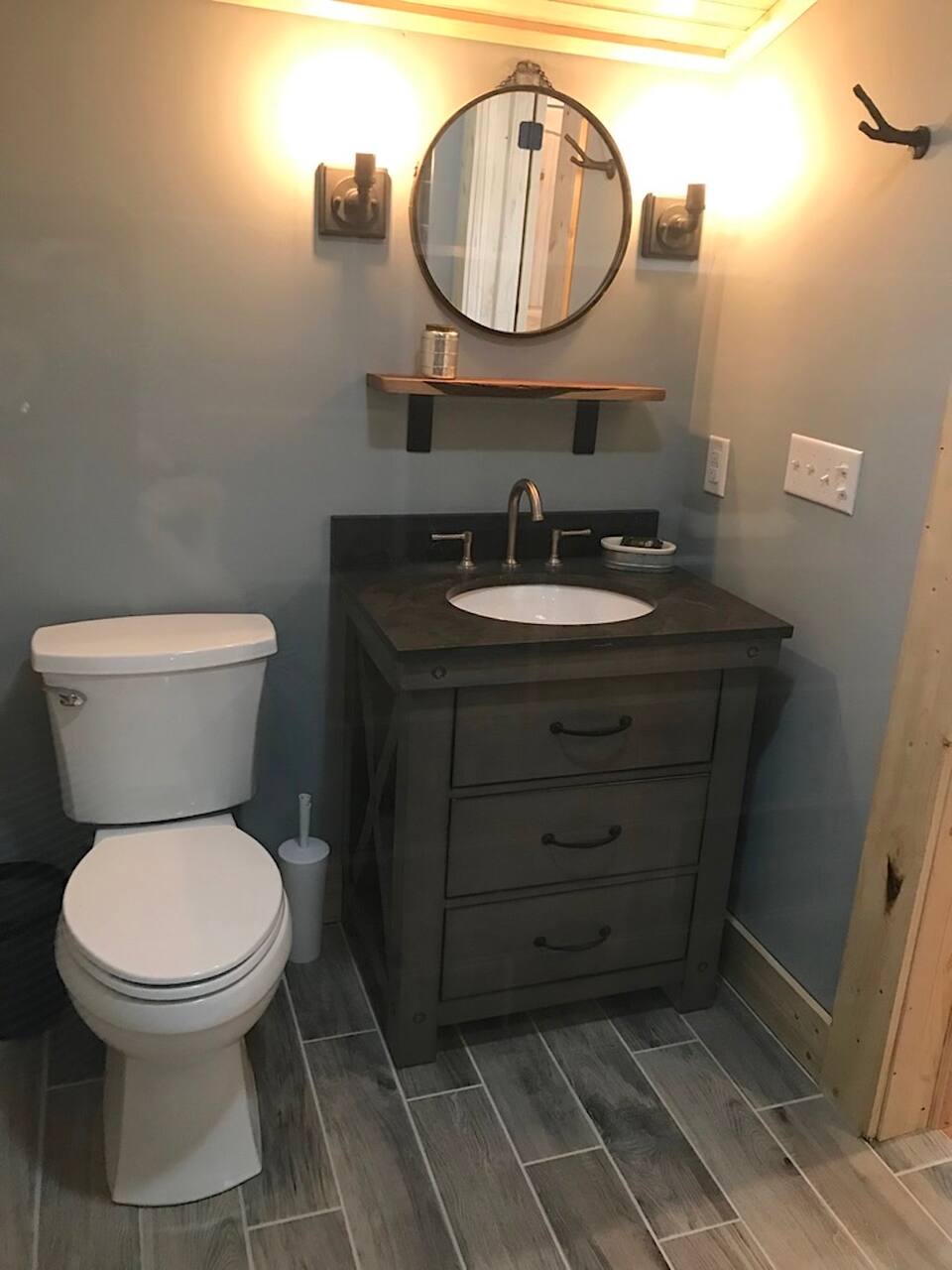 This exquisite Barn Themed home is an exceptional, mountain-top haven, perfect for making lifelong memories with the ones you love. It is a stunningly beautiful and rises majestically from the it’s surrounding to dominate the Ridge. The multitude of windows frame a stunning, ever-changing panoramic view of the Blue Ridge Mountains. Every little detail of this sanctuary, from the Industrial/Barn decor, the large wood stove with stacked wood awaiting your arrival, and the thoughtfully outfitted kitchen and baths instantly engenders a feeling of home.